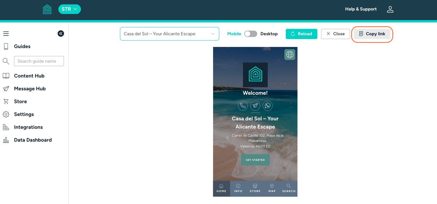 On the right-hand side of the screen, click Copy Link to copy your guide’s link