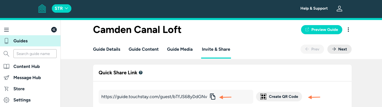 Every guide automatically has its own Quick Share Link, which can also be downloaded as a QR code for easy sharing.