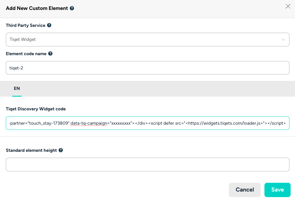 - Step 2: Add your Tiqets embed code to Touch Stay