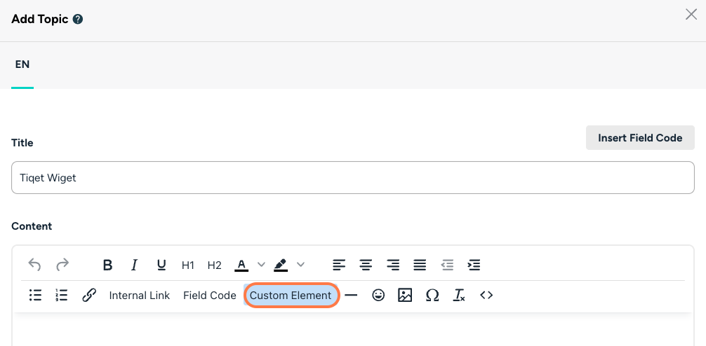 - In Element code name, enter your own reference name (or use the one we gave you).