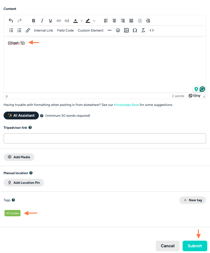 You can place your Tiqets widget anywhere in your Content Hub, for example in a section about local attractions or things to do.
