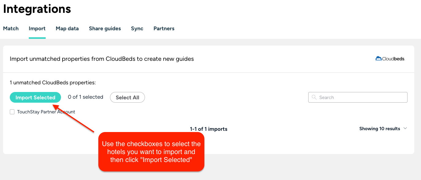 If you have any remaining unmatched properties from Cloudbeds, then the next screen allows you to import those into Touch Stay.