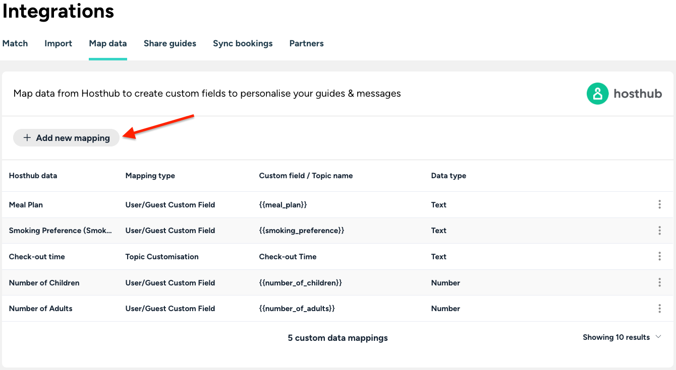 You can map Hosthub rental & rental data fields to Touch Stay custom fields or topic customisations. These can then be inserted into guides and guest messages to personalise them for each rental. The following paragraphs explain how to map and sync Hosthub booking data to your custom fields or topic customisations.