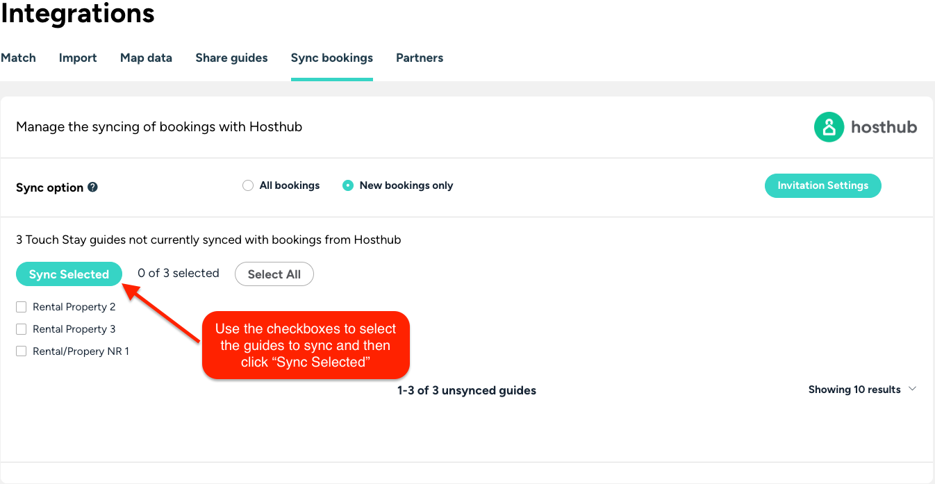 - If you are already using Memo, Touch Stay's guest messaging tool, before you connect your Hosthub account, then it's best to choose the option “New bookings only” to prevent duplicate bookings being imported.