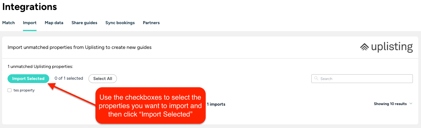 If you still have any unmatched listings from Uplisting, you can easily import them into Touch Stay.