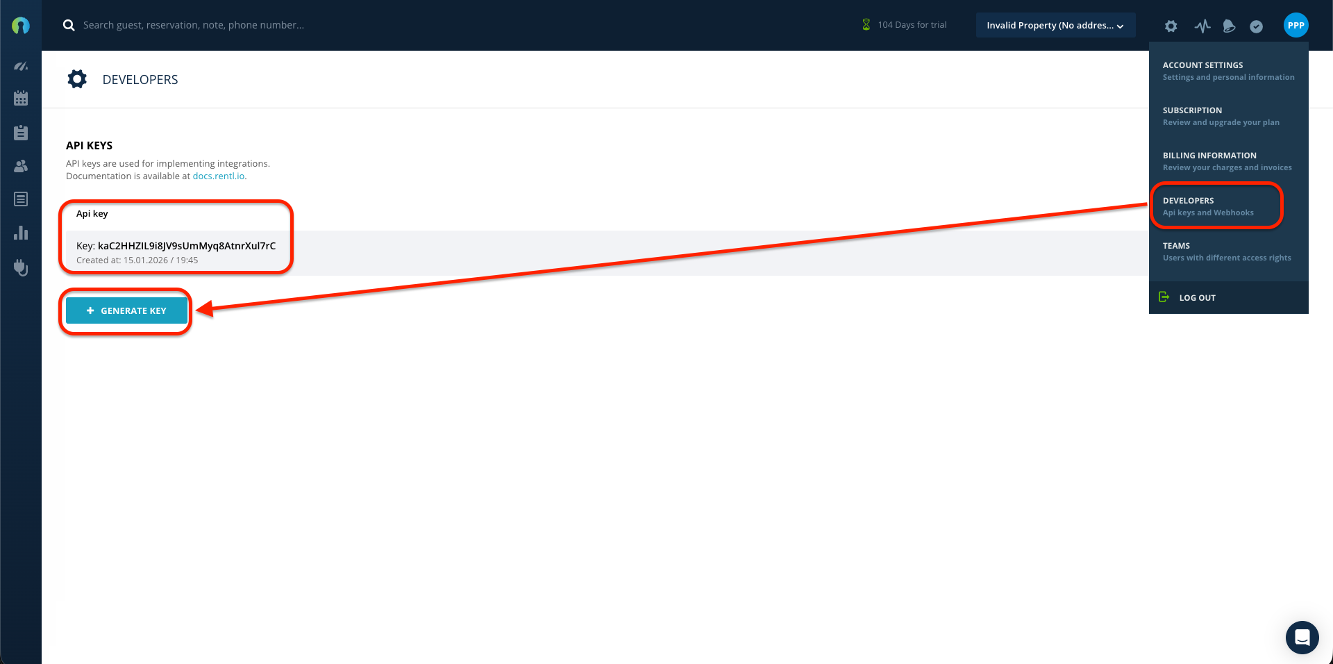 You will need to get your Hostaway API key to get started. Log into your Hostaway account and go to Settings > Hostaway API. Follow the steps below to generate your API key: