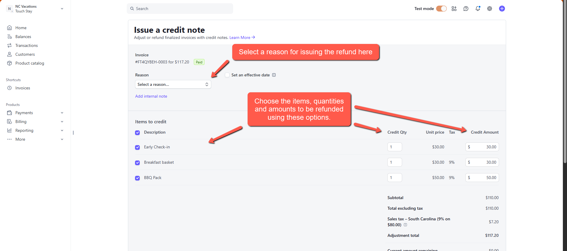 - Refund Amount: You can choose to issue a full refund or a partial refund (e.g., if you are retaining a small restocking fee).